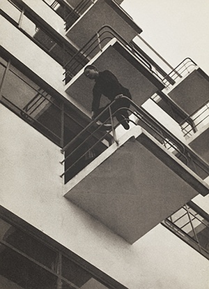 From right to left, Laszlo in his Atelier at the Bauhaus school in the 1920’s, A Magazine cover produced by the Bauhaus in 1942, The balconies at the Bauhaus school in the 1920’s.