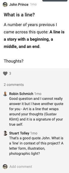Upload your final black line drawing to the ideas wall and a link to your blog showing process and reflection.