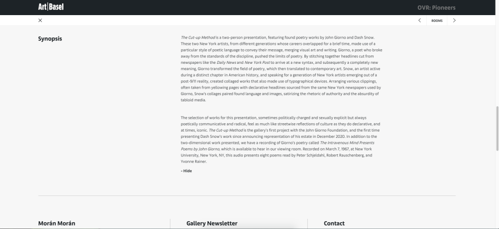 Art Basel, (2021). OVR: Pioneers [online] ArtBasel.com. Available at: https://www.artbasel.com/ovr [Accessed 24 March. 2021].